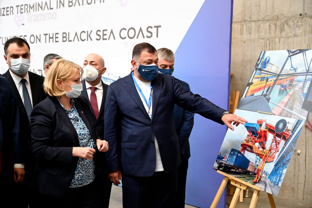 The official ceremony of Batumi fertilizer terminal opening. Natia Turnava congratulated the audience on the successful implementation of this important project. The Minister of Economy and Sustainable Development of Georgia highlighted that the new terminal will process and transport over 1 500 000 tonnes of mineral fertilizers per year.